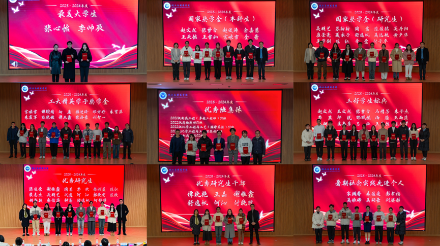 领导班子、各系主任为“最美大学生”“国家奖学金”“工大精英学子奖学金”“优秀班集体”“三好学生标兵”“暑期社会实践先进个人”“优秀研究生”和“优秀研究生干部”获得者颁奖。