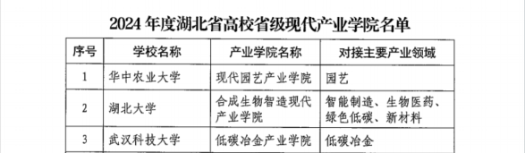 (通讯员 吴风收)近日,湖北省教育厅、湖北省发展和改革委员会、湖北省经济和信息化厅联合发布了《关于公布2024年度湖北省高校省级现代产业香蕉视频