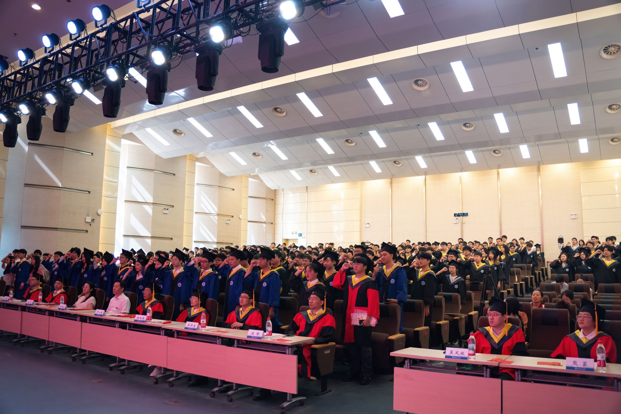 毕业典礼暨学位授予仪式在庄严的国歌声中拉开帷幕,激昂的旋律在会场回荡,激发着学子们的爱国热忱。