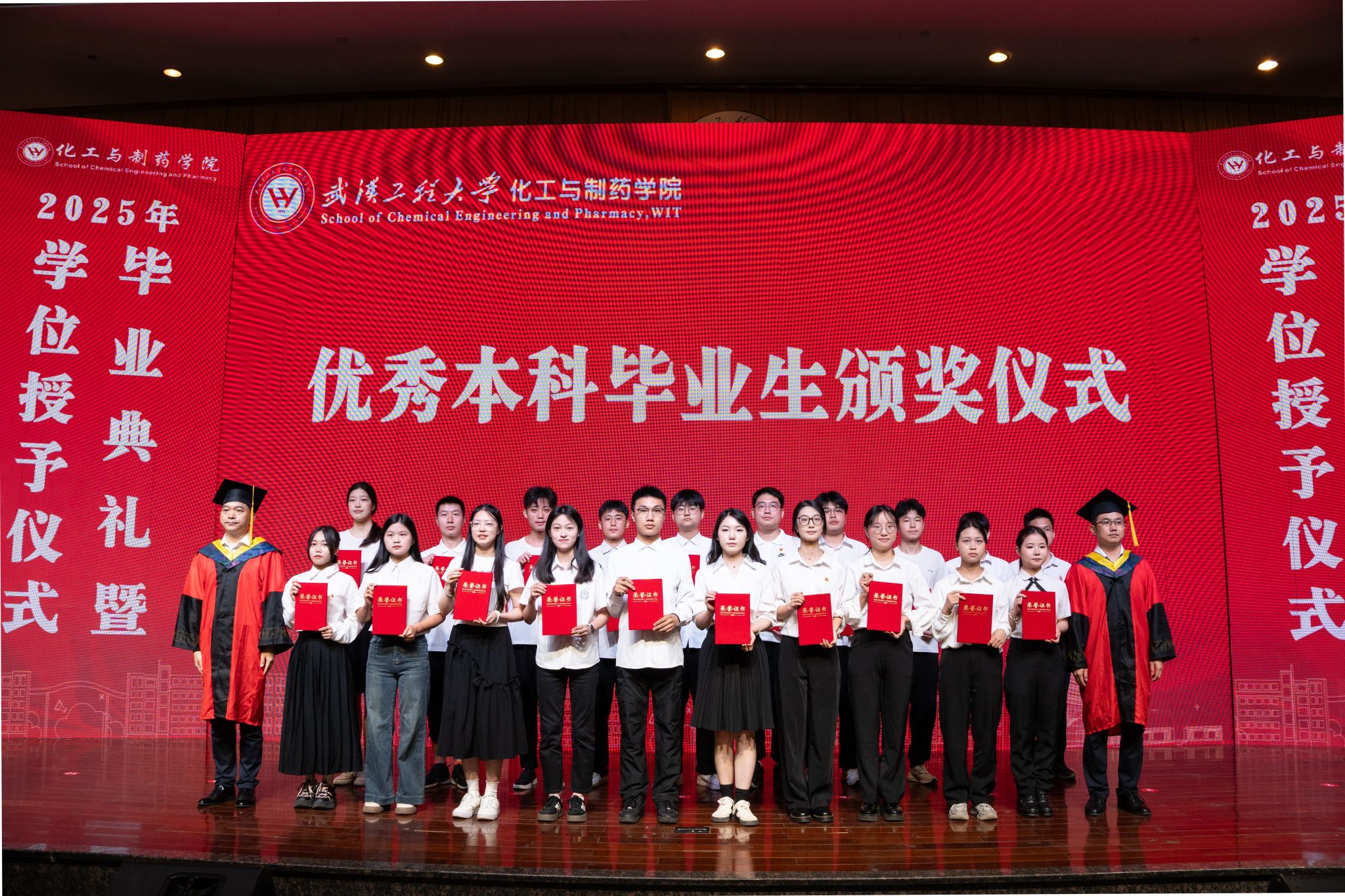 古双喜、吴华东为优秀本科毕业生颁发荣誉证书。