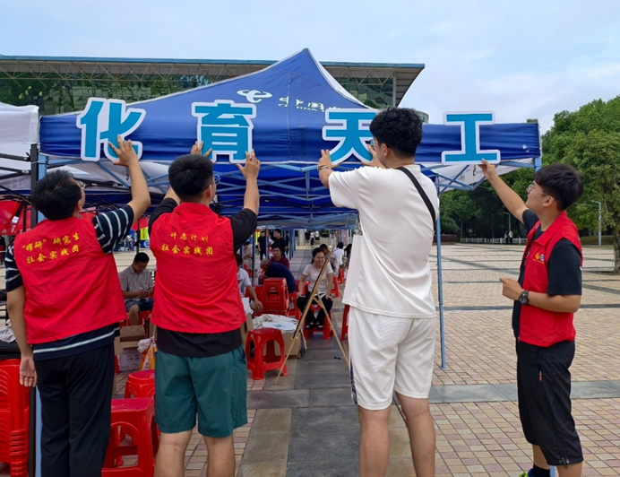 组织师生党员志愿服务队开展新生宿舍清扫整理活动,科学规划、精心布置迎新报到点位。