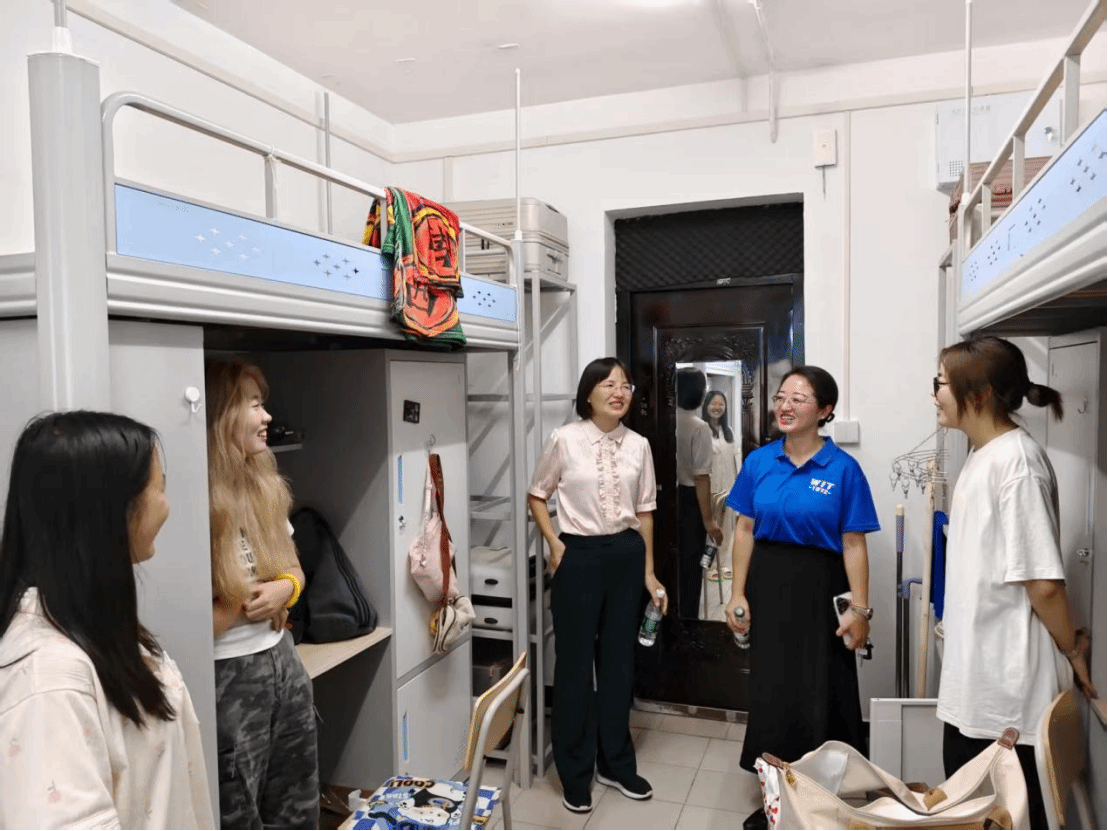 领导班子与班主任、新生辅导员一同走进新生宿舍,开展暖心走访与慰问活动。