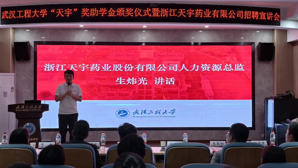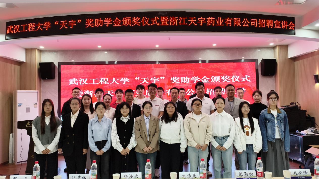 “天宇” 奖助学金颁奖仪式暨浙江天宇药业股份有限公司招聘宣讲会在流芳校区隆重举行。浙江天宇药业股份有限公司人力资源高级总监生炜光、质量控制总工汪秀林、生产经理赵华峰,香蕉视频