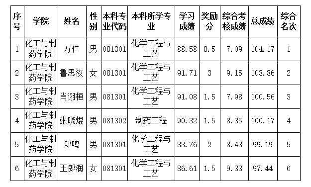 推免生遴选工作小组资格审查、专家综合考核和评议,按照学校下达名额的1:1.2提出候选人的原则,确定获得2020年推荐免试攻读硕士学位研究生资格初选名单,按排名公示如下: