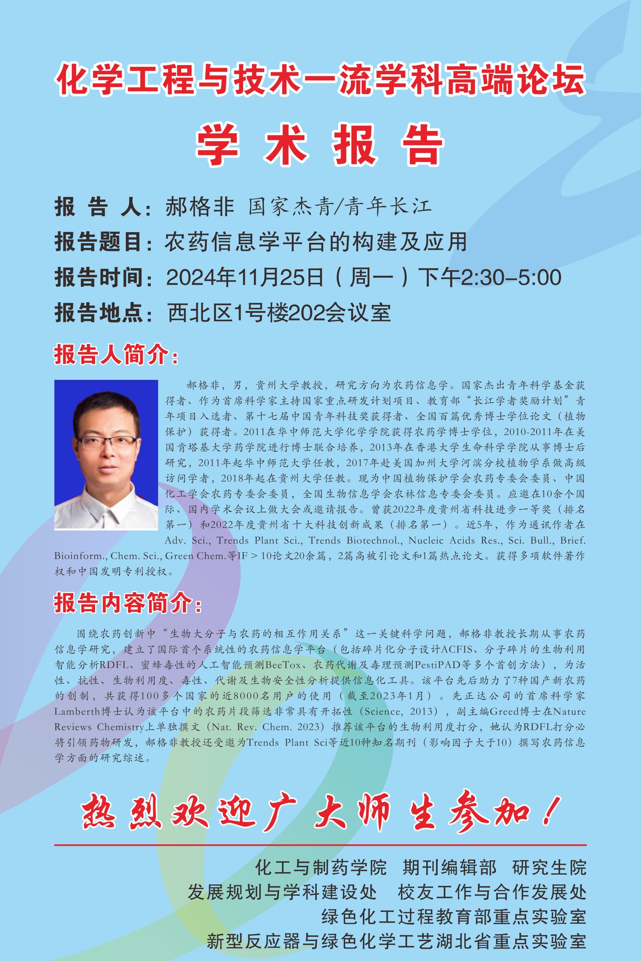 【研究生创新学术论坛】农药信息学平台的构建及应用