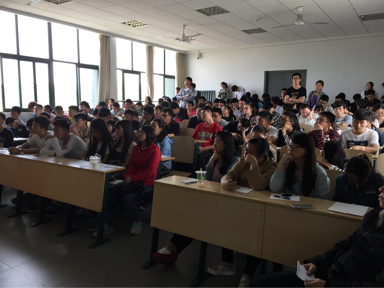 部分师生共计150余人聆听了报告。金放院长对Emery教授进行了简要介绍,并对其到来表示热烈欢迎。Emery教授以给同学们讲述他的家庭为开场白,向同学们介绍了化学工程的前景、人们对化工工业的误解,引起同学们的深思。接着,Emery教授以其亲身经历幽默风趣地向同学们讲述了上大学的重要意义,强调学习能够改变命运,鼓励同学们好好学习。最后,Emery教授向同学们简要介绍了加拿大的部分高校及教育体制,并真诚地希望同学们去国外继续深造,为将来走向社会奠定坚实的基础。