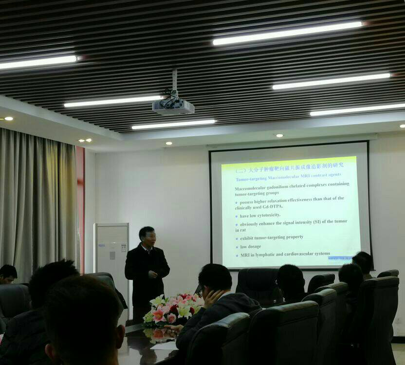 鄢教授介绍了癌症的对人体危害和癌症临床诊断的重要性。早期发现,诊断,治疗是治愈的关键。鄢教授从四个方面讲述了肿瘤靶向医学分子影像诊断探针的研究。第一,肿瘤靶向性正电子发射计算机断层扫描(PET)示踪剂;第二,靶向荧光成像诊断技术;第三,肿瘤靶向性电子顺磁共振成像研究;第四,肿瘤靶向性磁共振成像(MRI)造影剂的研究。鄢教授在生物医用靶向材料(包括组织或器官靶向性磁共振成像(MRI)造影剂、肿瘤靶向性电子顺磁共振成像(EPRI)诊断剂、正电子发射与X射线计算机断层扫描显像(PET、CT)示踪剂等医学影像诊断分子探针,肿瘤靶向性缓释抗癌药物与医学应用)等领域的科学研究,做了许多创新性的工作,取得了较多的成果。并且他将癌症早期诊断与治疗相结合,提高我国癌症临床早期诊断与治疗水平,他的科学研究具有十分重要的科学理论意义与应用价值。