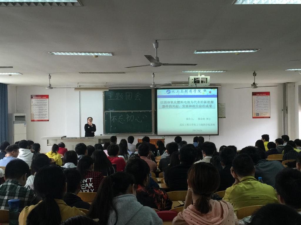 熊春艳博士应邀在流芳校区一教学楼L1402教室为学生做了主题为“以固体氧化物燃料电池为代表的新能源器件的兴起、发展和相关前沿成果”的学术报告。报告会由吴华东博士主持。