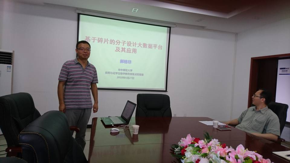 邀请,华中师范大学郝格非教授在化工大楼604-605办公室做了一场题为“基于碎片的分子设计大数据平台及其应用”的学术报告。