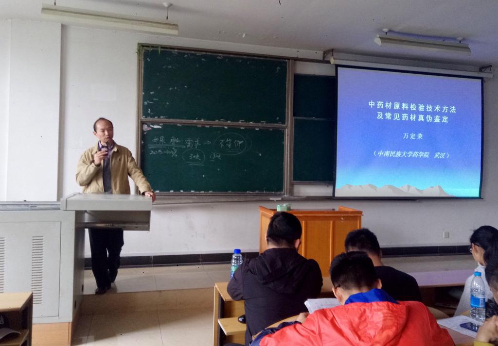 万定荣教授在流芳校区一教楼L1207教室做了一场题为“中药材原料检验技术方法及常见药材真伪鉴定”的学术报告。